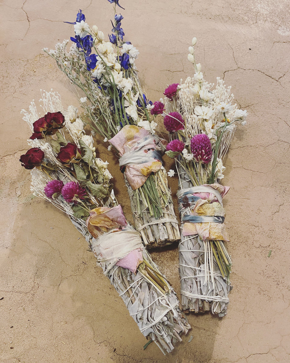 These bundles make great housewarming gifts. Each one is unique and made with different wildflowers and wrapped with recycled dyed silks...may vary from image shown, but don’t worry, your bundle(s) will be beautiful. Information and instructions will be included. You will receive one bundle approximately 9” in length.